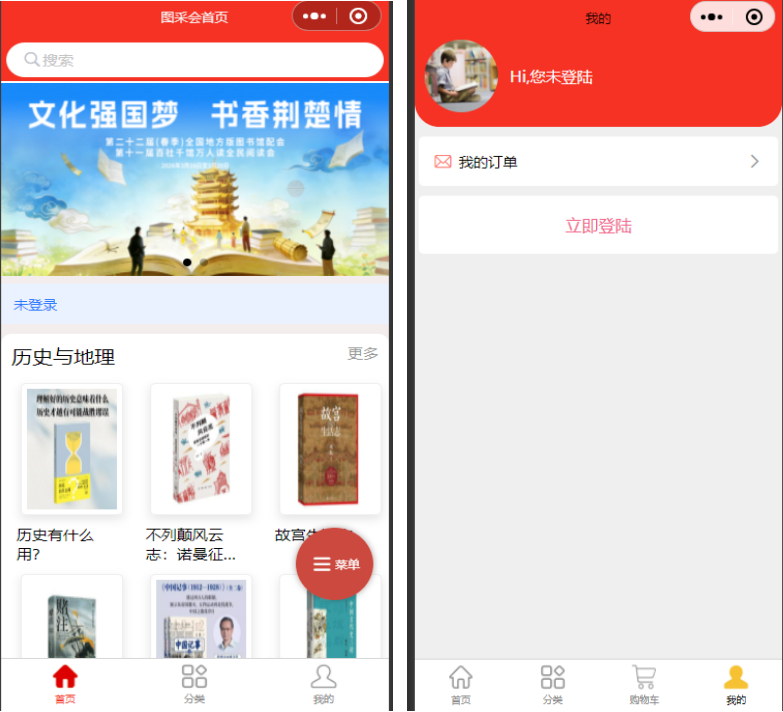 (2)我的购物车:任意界面点击页面右上方我的购物车,查看已经选购的图书;